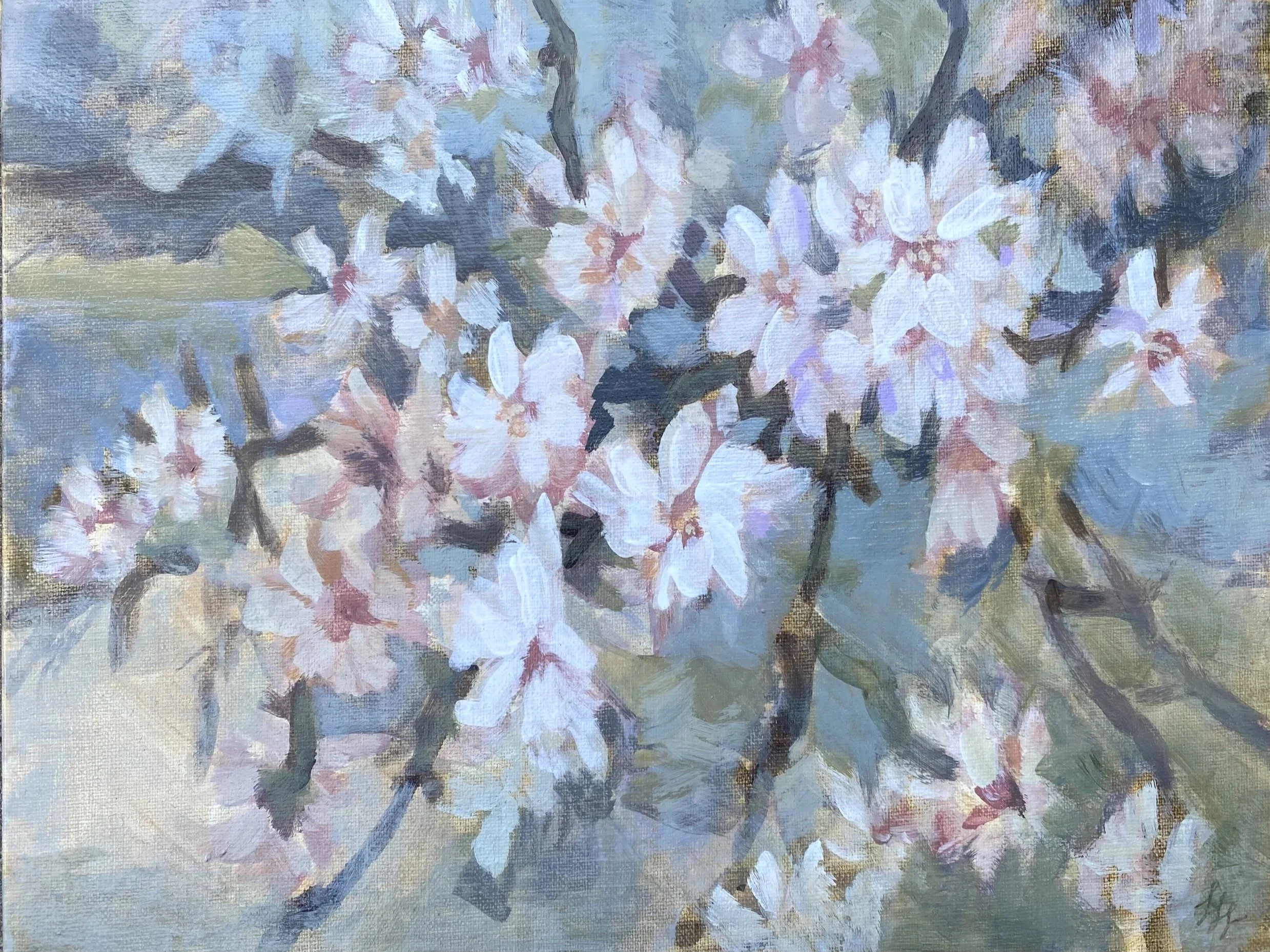 Almond Blossom Study, Acrylic on Linen, 2026.